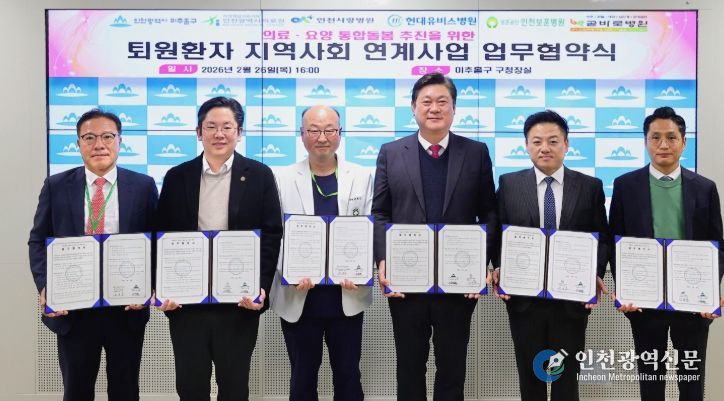 [인천광역신문] 관리자 기자 | 인천 미추홀구는 지난 26일 지역 내 5개 의료기관과 ‘퇴원 환자 지역사회 연계사업’ 추진을 위한 업무협약을 체결했다.