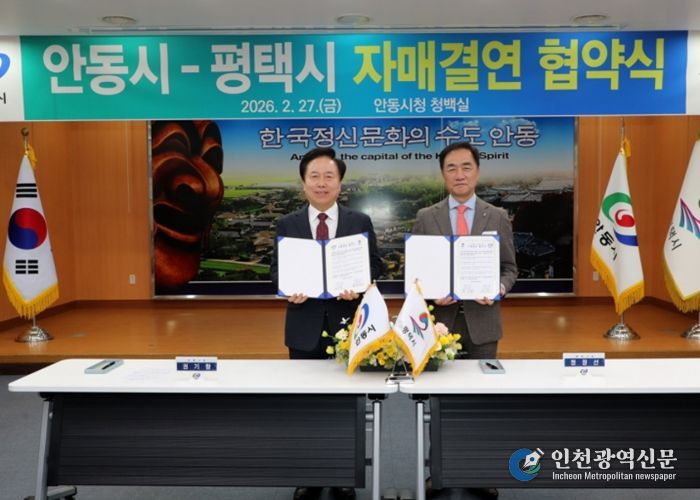 [인천광역신문] 관리자 기자 | 안동시는 2월 27일 안동시청에서 평택시와 자매결연 협약을 체결하고 경제․문화․관광‧농업 등 전 분야에 걸친 상생발전의 닻을 올렸다.