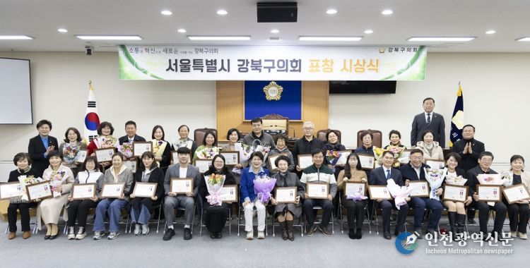 [인천광역신문] 관리자 기자 | 강북구의회는 지난 2월 27일 본회의장에서 평소 헌신적인 봉사와 나눔으로 지역사회 발전에 기여한 모범 구민 35명에게 의장 표창장을 수여했다.
