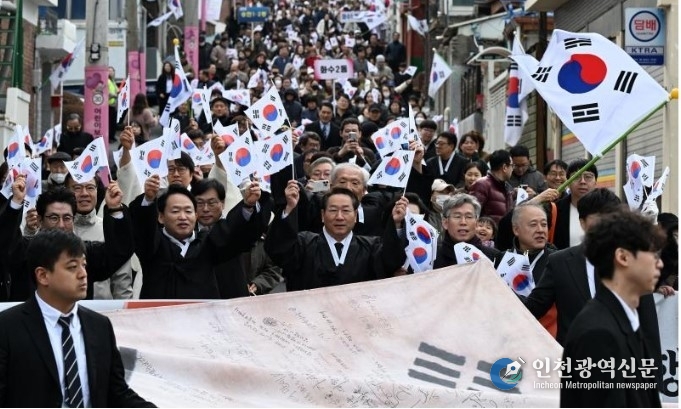 기념식 이후 유정복 시장은 인천창영초등학교로 이동해 시가행진에 참여했다. 참가자들과 함께 ‘대한독립 만세’를 외치며 3·1 만세운동을 재현하는 행진을 통해 그날의 함성과 독립의 의미를 시민들과 다시 한번 나누는 시간을 가졌다.