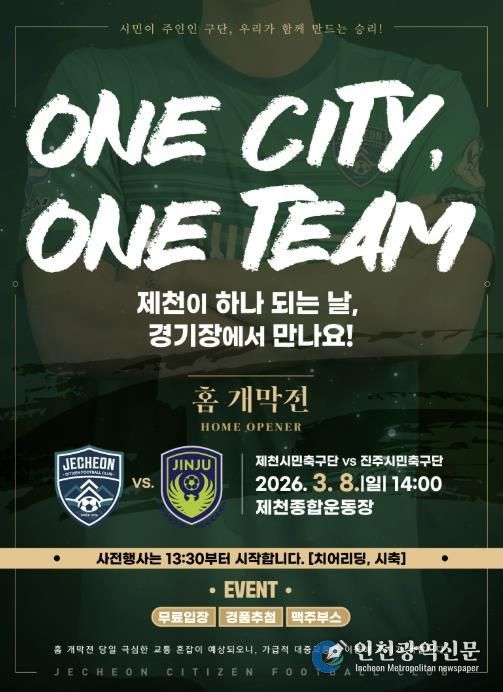 [인천광역신문] 관리자 기자 | 제천시민축구단이 오는 3월 8일 오후 2시, 제천종합운동장에서 역사적인 홈 개막전을 연다.
