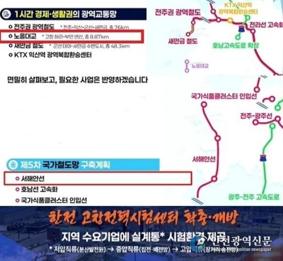 특히 고창과 부안을 잇는 숙원사업인 노을대교 건립사업이 최근 실시설계 업체로 ‘동명기술공단 컨소시엄’이 최종 확정됨에 따라, 사업이 마침내 가시화되며 착공을 향한 가속도를 내게 됐다. 서해안 철도는 수도권과 호남을 잇는 새로운 물류·관광 축으로, 노을대교와 시너지를 일으켜 고창을 서해안권 교통의 핵심 허브로 만들 핵심사업으로 손꼽힌다.