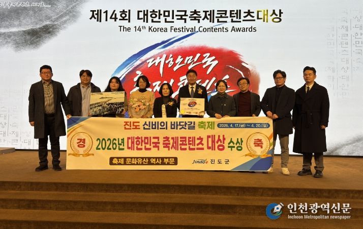 [인천광역신문] 관리자 기자 | 진도 신비의 바닷길 축제가 2026년 대한민국축제콘텐츠 대상에서 ‘축제문화유산‧역사 부문 대상’을 받으며 대한민국을 대표하는 해양문화축제로서의 위상을 다시 한번 입증했다.