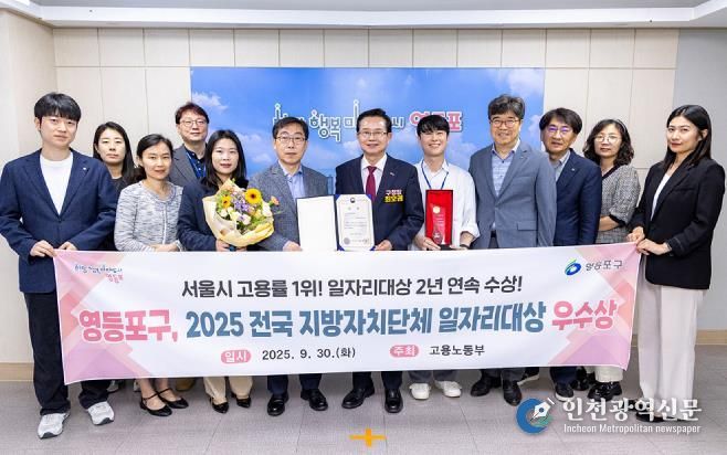 [인천광역신문] 관리자 기자 | 영등포구가 국가데이터처가 발표한 ‘2025년 하반기 지역별 고용조사’에서 전체 고용률과 여성 고용률 모두 서울시 1위를 기록하며 3년 연속 서울시 정상의 자리를 지켰다.
