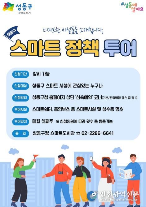 [인천광역신문] 관리자 기자 | 서울 성동구는 성동형 스마트 시설과 성수동 핫플을 동시에 체험해 볼 수 있는 ‘스마트정책 투어 프로그램’을 운영한다고 밝혔다.