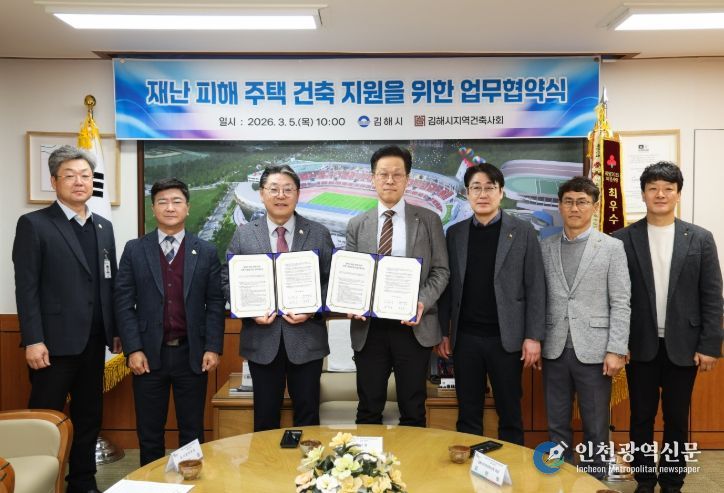[인천광역신문] 관리자 기자 | 김해시는 5일 오전 10시 김해시청 시장실에서 김해지역건축사회와 재난으로 피해를 입은 주민들의 주거 안정을 지원하기 위한 ‘재난 피해 주택 건축 지원 업무협약’을 체결했다.