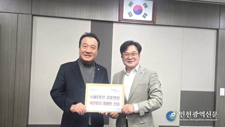 [인천광역신문] 관리자 기자 | 김병수 김포시장이 4일 김포시민의 간절한 염원을 담은 국회국민청원서를 들고 직접 국회를 찾았다. 김 시장은 이날 엄태영 국회 국토교통위원회 청원심사소위원장을 면담하고, ‘서울 지하철 5호선 김포·검단 연장 사업’의 신속한 예비타당성조사 통과와 절차 진행을 강력히 촉구했다.