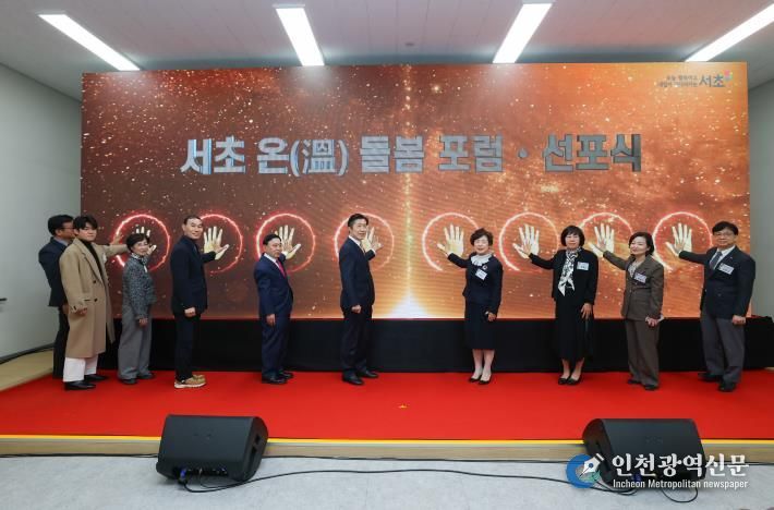 이날 행사는 사회복지기관 및 돌봄서비스 제공기관 관계자, 서초구민 등 약 200여 명이 참석한 가운데 1부 포럼과 2부 선포식으로 진행됐다. 1부 포럼에서는 인천대학교 사회복지학과 전용호 교수가 ‘통합돌봄법의 시행과 서초구 지역사회 변화’를 주제로 강연을 진행해 현장 실무자들과 통합돌봄 추진 방향을 공유했다. 이어 2부 선포식에서는 청년예술인 공연단의 식전 공연을 시작으로 사업 안내 영상 시청, 서초형 통합돌봄 비전 선포 퍼포먼스가 펼쳐졌다.