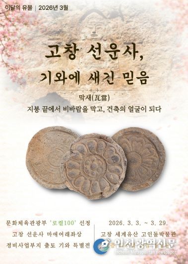 [인천광역신문] 관리자 기자 | 고창 세계유산 고인돌박물관이 3월의 유물로 ‘선운사 동불암지 마애여래좌상 정비사업부지 발굴조사 출토 유물’을 선정해 기획전을 개최한다고 6일 밝혔다. 전시는 29일까지 고인돌박물관 2층 실감영상관에서 열린다.