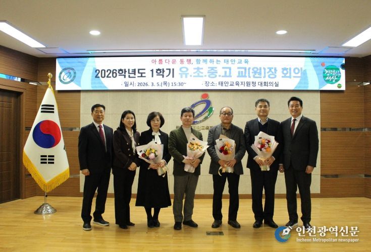 [인천광역신문] 관리자 기자 | 충청남도태안교육지원청은 3월 5일 태안교육지원청 대회의실에서 관내 유‧초‧중‧고 교장(원장), 교육지원청 담당자 60명이 참석한 가운데 2026학년도 1학기 유‧초‧중‧고 교장(원장) 회의를 개최했다.
