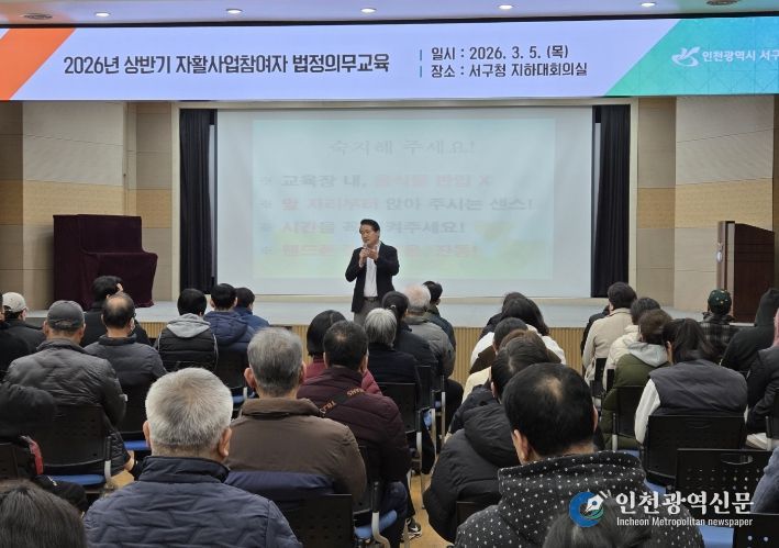 [인천광역신문] 관리자 기자 | 인천 서구는 지난 5일 자활사업 참여자 250여 명을 대상으로 ‘2026년 상반기 법정의무교육’을 실시했다고 밝혔다.