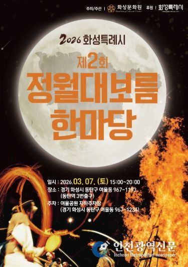[인천광역신문] 관리자 기자 | ‘2026년 화성특례시 제2회 정월대보름 한마당’이 오는 3월 7일 오후 3시부터 8시까지 동탄역 3번 출구 앞 광장에서 열린다.