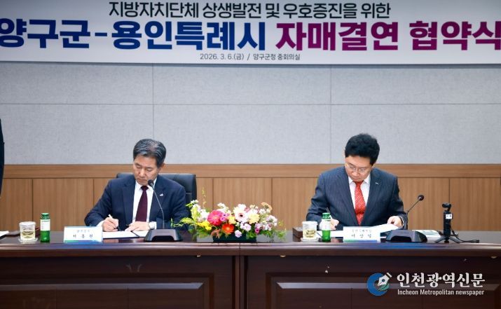[인천광역신문] 관리자 기자 | 용인특례시는 6일 강원특별자치도 양구군과 자매결연을 하고, 두 도시의 교류와 발전을 위해 적극 협력하기로 했다.