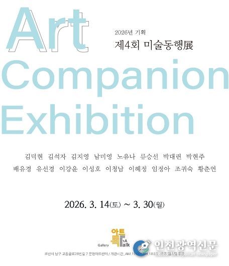 [인천광역신문] 관리자 기자 | 부산남구문화재단(이사장 김철)은 오는 3월 14일부터 3월 30일까지 문현아트센터에서 '2026 기획전시 제4회 미술동행전'을 개최한다고 밝혔다.