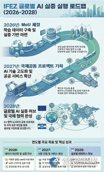 이는 ‘도시가 데이터를 제공하고, 기업이 기술을 고도화하며, 공공이 검증된 AI를 구매하는 구조’를 국제적으로 확산하는 시도다. IFEZ는 2026년 실행형 업무협약(MoU) 체결을 시작으로 2027년 국제 공동 파일럿 기획, 2028년 국제 공동 실증 및 글로벌 AI 실증 허브 구축으로 이어지는 단계적 로드맵을 추진할 계획이다.