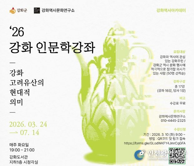 수강료는 무료이며 강화군민을 비롯해 고려 역사에 관심이 있는 누구나 참여할 수 있다. 신청은 네이버폼을 통해 50명을 선착순으로 모집한다.