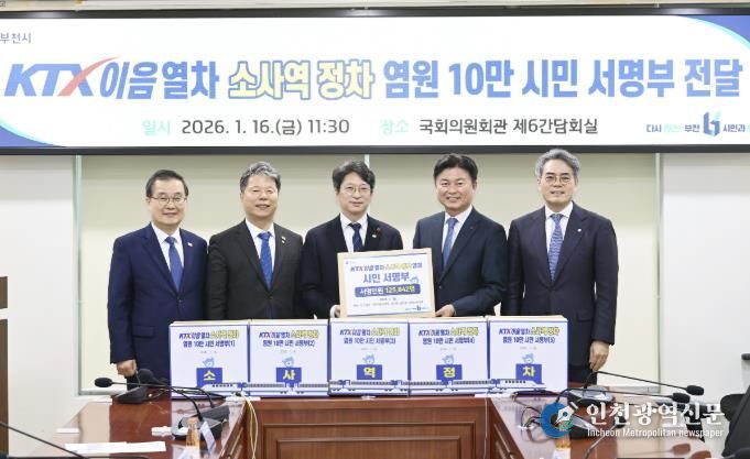 [인천광역신문] 관리자 기자 | 부천시가 추진 중인 서해선 KTX-이음열차 소사역 정차 사업이 국토교통부와의 협의에서 긍정적인 진전을 보이고 있다. 올해 초 국토교통부에 시민 12만 5천여 명의 뜻을 모은 서명부를 전달한 것을 계기로, 새로운 대안에 대한 협의가 본격화되면서 사업이 전환점을 맞은 것이다.