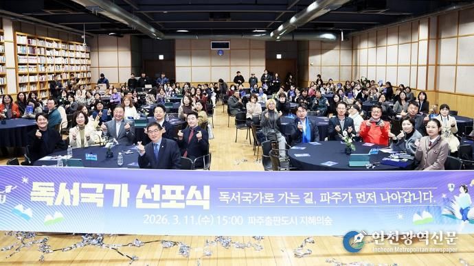 [인천광역신문] 관리자 기자 | 파주시는 지난 11일 파주출판도시 지혜의숲 대회의실에서 시민과 도서관·교육·출판 관계자 등 200여 명이 참석한 가운데 ‘파주시 독서국가 선포식’을 개최했다.