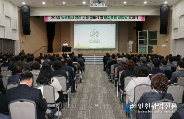 [인천광역신문] 관리자 기자 | 양산시는 2026년 3월 12일 양산비즈니스센터 컨벤션홀에서 '2030 녹색도시 양산' 비전 선포식과 탄소중립 실천단 발대식을 개최하고, 지속가능한 녹색도시로의 본격적인 전환을 공식 선언했다.
