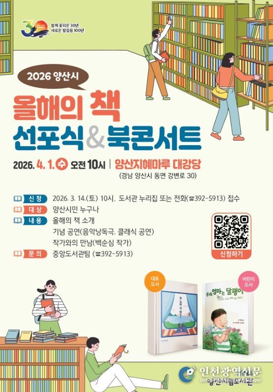 [인천광역신문] 관리자 기자 | 양산시립도서관은 오는 4월 1일 수요일 오전 10시, 지혜마루 대강당에서‘2026년 올해의 책 선포식 및 북콘서트’를 개최한다.