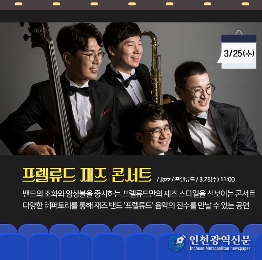 [인천광역신문] 관리자 기자 | 인천 남동문화재단은 매달 마지막 주 수요일 오전 11시마다 ‘마티네콘서트 마실’을 진행하며, 2026년도 첫 마실 '프렐류드 재즈 콘서트'는 3월 25일에 개최한다.