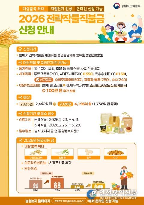 올해부터 전략작물직불제 하계 조사료 지원단가는 ha당 500만 원에서 550만 원으로 인상된다. 동계 밀·조사료와 하계 두류·가루쌀·조사료를 재배하는 이모작의 경우 ha당 100만 원이 추가 지원돼 논을 활용한 조사료 재배 확대가 기대된다.