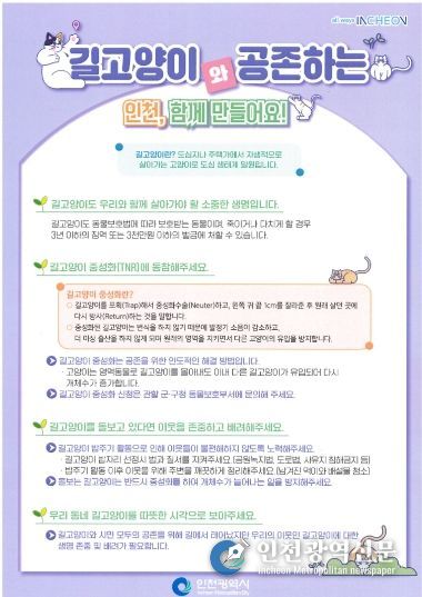 구 관계자는 “길고양이 중성화 지원사업을 통해 주민 생활 불편을 줄이고 인도적인 방식으로 길고양이 개체 수를 조절해 동물복지를 실현할 것”이라며 “앞으로도 사람과 동물이 함께 공존하는 행복한 계양구를 만들기 위해 노력하겠다.”라고 말했다.