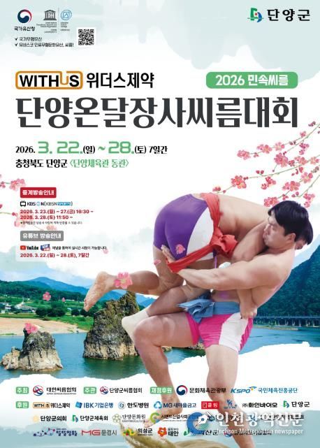 군은 ‘위더스제약 2026 민속씨름 단양온달장사씨름대회’가 오는 22일부터 28일까지 7일간 단양군체육관 동관(구 문화체육센터)에서 열린다고 밝혔다.