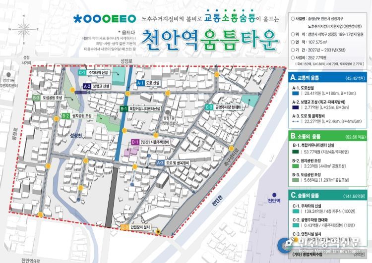 [인천광역신문] 관리자 기자 | 천안시가 서북구 성정동 일대의 노후 저층 주거지역을 아파트 수준의 정주 환경으로 개조하기 위해 국토교통부 주관의 ‘노후주거지정비 지원사업’ 공모에 도전한다고 18일 밝혔다.