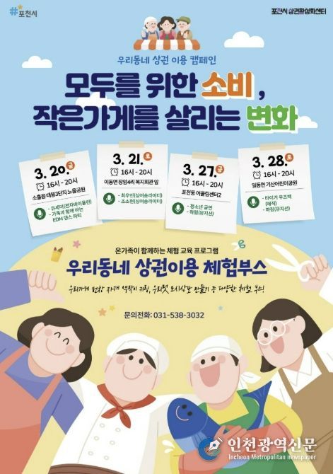 [인천광역신문] 관리자 기자 | 포천시는 오는 20일부터 지역경제 활성화를 위한 ‘우리동네 상권이용 캠페인’을 개최한다.