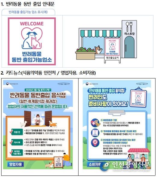 [인천광역신문] 관리자 기자 | 인천광역시는 2026년 3월 1일부터 “반려동물 동반출입 음식점 제도”를 본격 시행했다고 밝혔다.