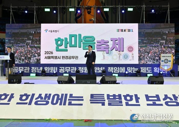 [인천광역신문] 관리자 기자 | 서울특별시의회 환경수자원위원회 임만균 위원장(더불어민주당, 관악3)은 3월 19일에 잠실 학생체육관에서 열린 ‘2026 서울특별시 환경공무관 한마음 축제’에 참석해 축사를 전하고 환경공무관들의 노고에 감사를 표했다.