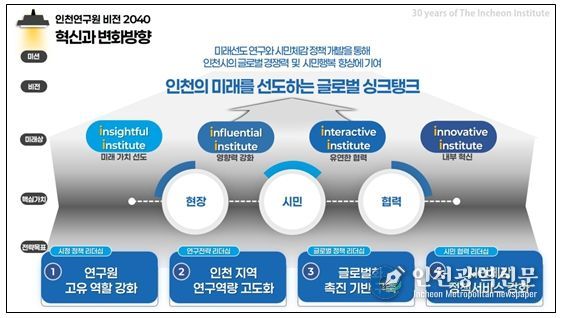 먼저, 「인천연구원 비전 2040」을 통해 “인천의 미래를 선도하는 글로벌 싱크탱크”로의 도약을 선포할 예정이다.