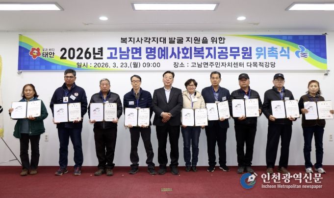 [인천광역신문] 관리자 기자 | 태안군이 23일부터 30일까지 관내 8개 읍·면에서 명예사회복지공무원 1019명을 위촉하며 지역 복지 사각지대 해소를 위한 인적 안전망 강화에 나선다.