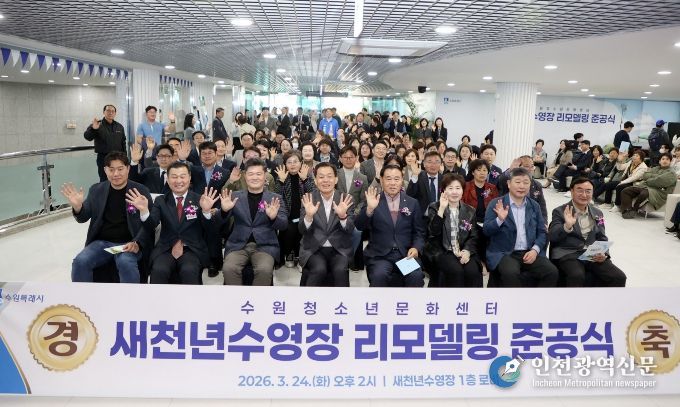[인천광역신문] 관리자 기자 | 수원특례시의회는 24일 청소년문화센터 내 새천년수영장에서 열린 '새천년수영장 리모델링 공사 준공식'에 참석해 준공을 축하했다.