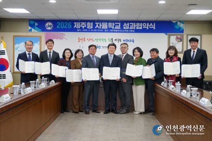 [인천광역신문] 관리자 기자 | 제주특별자치도교육청은 24일 도교육청 상황실에서 2026학년도 신규 지정 제주형 자율학교 10개교(초 10개교)와 성과 협약을 체결했다.