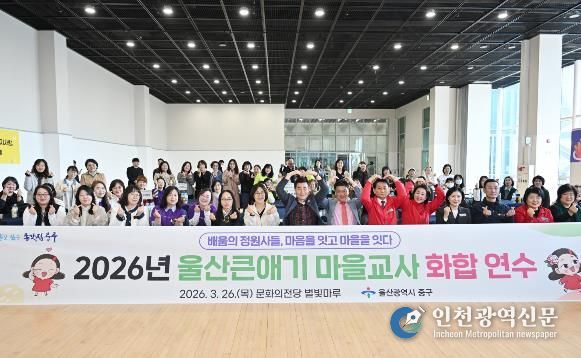 [인천광역신문] 관리자 기자 | 울산 중구가 3월 26일 오전 10시 울산 중구문화의전당 별빛마루에서 ‘배움의 정원사들, 마음을 잇고 마을을 잇다’라는 주제로 ‘울산큰애기 마을교사 화합 연수’를 개최했다.