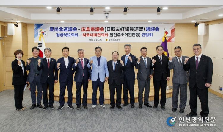 [인천광역신문] 관리자 기자 | 경상북도의회는 3월 26일 일본 히로시마현의회 나카모토 타카시 의장 등 일한우호의원연맹 소속 의원 6명이 경상북도의회를 방문했다고 밝혔다.