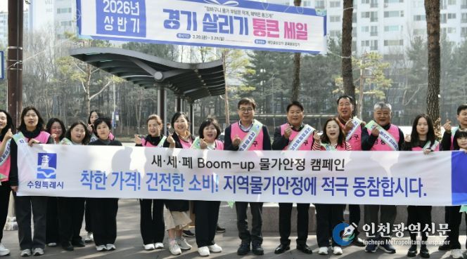 [인천광역신문] 관리자 기자 | 수원특례시 영통구는 지난 26일 매탄중심상가 골목형상점가 일원에서 2026년 상반기 새빛세일페스타와 연계한 ‘Boom-up 물가안정 캠페인’을 실시했다.