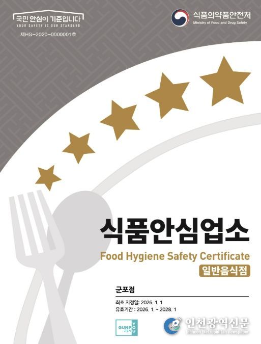 [인천광역신문] 관리자 기자 | 군포시는 식품안심업소(음식점위생등급 지정업소, 이하 지정업소) 재지정 평가에 대한 영업자 부담을 줄이고 재지정률을 높이고자 이달부터 지정업소 청소비 지원 사업을 추진한다.