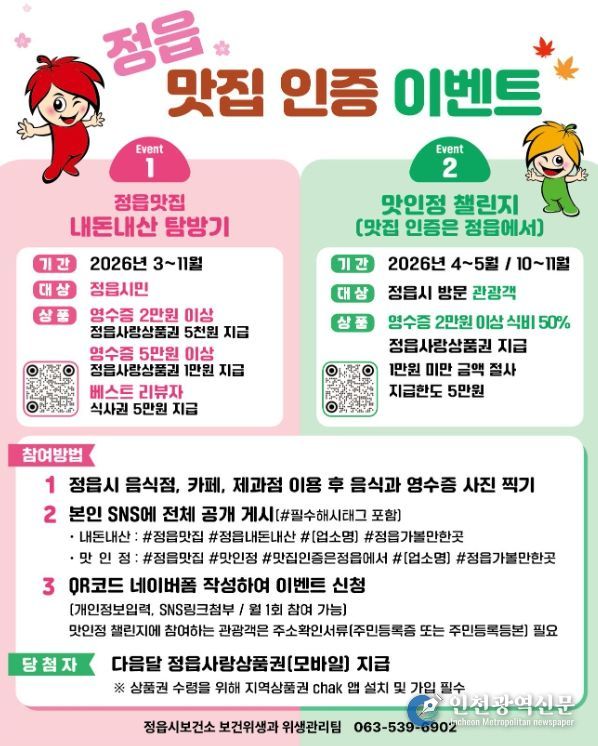 해당 이벤트 안내·QR코드는 정읍시청 누리집, 공식 SNS 채널, 또는 각 업소에 비치된 안내 게시물에서 확인할 수 있다.