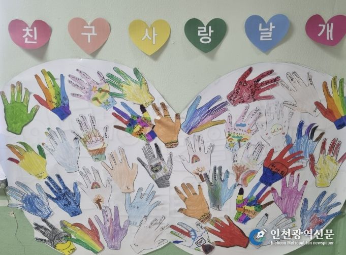 또한 학생들은 학급별로 ‘친구사랑 5계명’을 만들고 함께 선서하며 학교폭력 없는 학교를 만들 것을 다짐했다. 친구에게 감사의 마음을 담은 카드와 선물을 전달하는 활동을 비롯해 편지쓰기, 친구 캐릭터 그리기, 친구 이름으로 삼행시 짓기 등 다양한 친구사랑 프로그램도 함께 운영됐다.