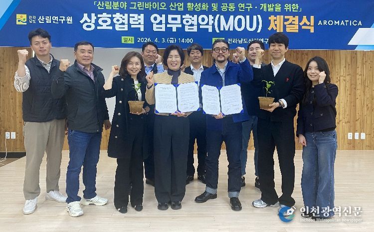[인천광역신문] 최예준 기자 | 전라남도산림연구원은 3일 ㈜아로마티카와 업무협약을 하고, 전남의 비교우위 난대 산림자원에서 추출한 에센셜오일을 활용해 케이(K)-뷰티 화장품 개발과 산업화를 본격 추진한다고 밝혔다.