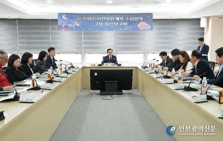 시는 3일 김석필 천안시장 권한대행 부시장을 비롯해 부서장 20여 명과 도시계획 및 조명디자인 분야 전문가들이 참석한 가운데 천안시 야간경관 계획 수립 용역 2차 중간보고회를 개최했다.
