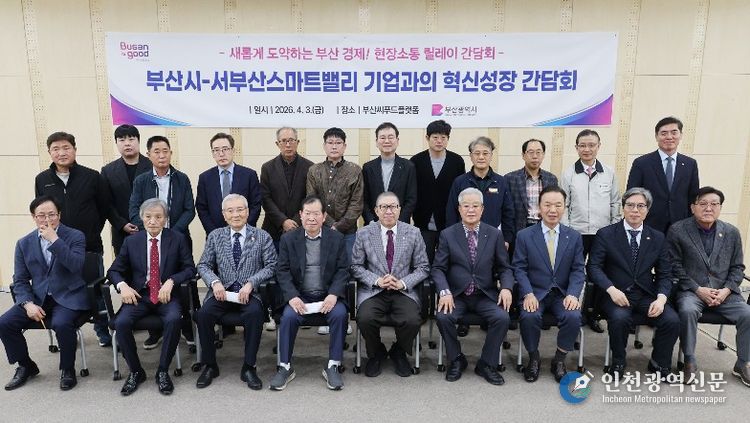 [인천광역신문] 최예준 기자 | 부산시는 오늘(3일) 오후 2시 30분, 사하구 부산씨푸드플랫폼 대회의실에서 서부산스마트밸리 기업과 함께 '제6차 기업 혁신성장 릴레이 간담회'를 개최한다고 밝혔다.