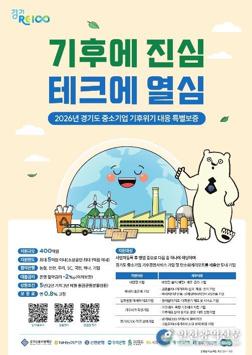 경기도는 도내 기업들의 저탄소 전환을 돕고 기후위기 대응 경쟁력을 근본적으로 강화하기 위해 ‘2026년 중소기업 기후위기 대응 특별보증’ 금융 지원을 본격 추진한다고 7일 밝혔다.