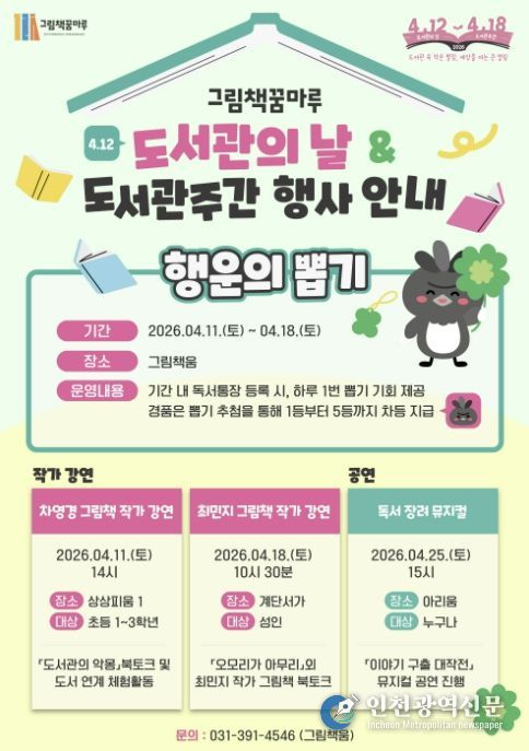 [인천광역신문] 최예준 기자 | 군포 그림책꿈마루는‘도서관의 날(4월 12일)’을 맞아 이용자 누구나 참여할 수 있는 다양한 문화 프로그램을 운영한다고 밝혔다.