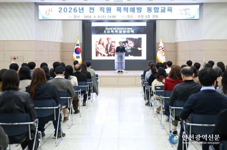 [인천광역신문] 최예준 기자 | 구로구가 이달 8일 구청 강당에서 공무원, 공무직 근로자, 환경공무관, 청원경찰, 기간제 근로자 등 전 직원을 대상으로 안전한 조직문화 조성을 위한 ‘폭력예방 통합교육’을 실시했다.