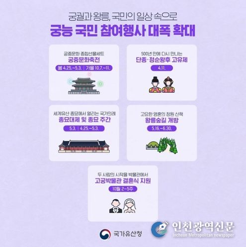 [인천광역신문] 최예준 기자 | ■ 궁궐과 왕릉, 국민의 일상 속으로 궁능 국민 참여행사 대폭 확대