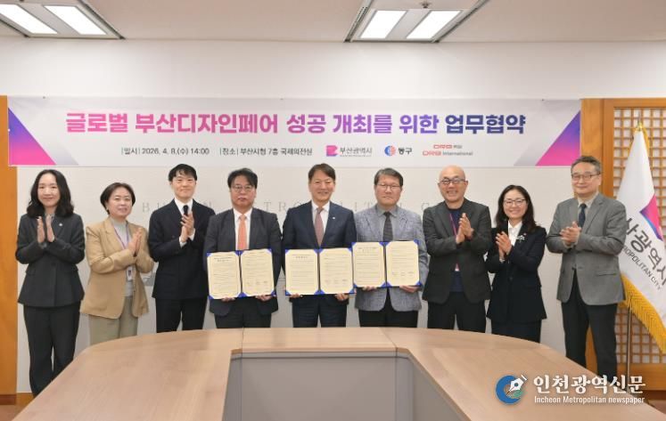 [인천광역신문] 최예준 기자 | 부산광역시 동구는 4월 8일 부산시청 국제의전실에서 부산광역시, 주식회사 디알비동일과 함께 ‘글로벌 부산디자인페어’ 추진을 위한 업무협약(MOU)을 체결했다고 밝혔다.